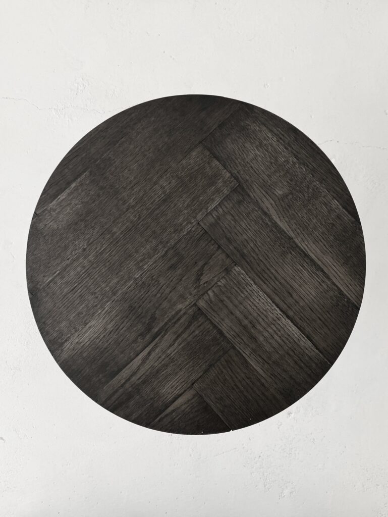 Eiken visgraat in een donkere olie gezet en verlijmd op zwart MDF. Schuin afgefreesd voor een strak resultaat.